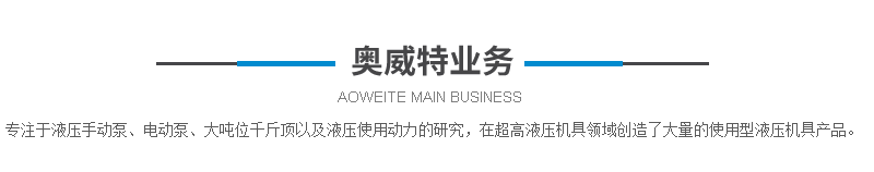 德州奧威特液壓機械有限公司有多年的超高壓元件及設備制造經驗,依托德州精湛的制造工藝和不斷創(chuàng)新的技術,專注于液壓手動泵、電動泵、大噸位千斤頂及拆裝科技以及液壓使用動力的研究,在超高液壓機具領域不斷研發(fā),創(chuàng)造了大量的使用型液壓機具產品。